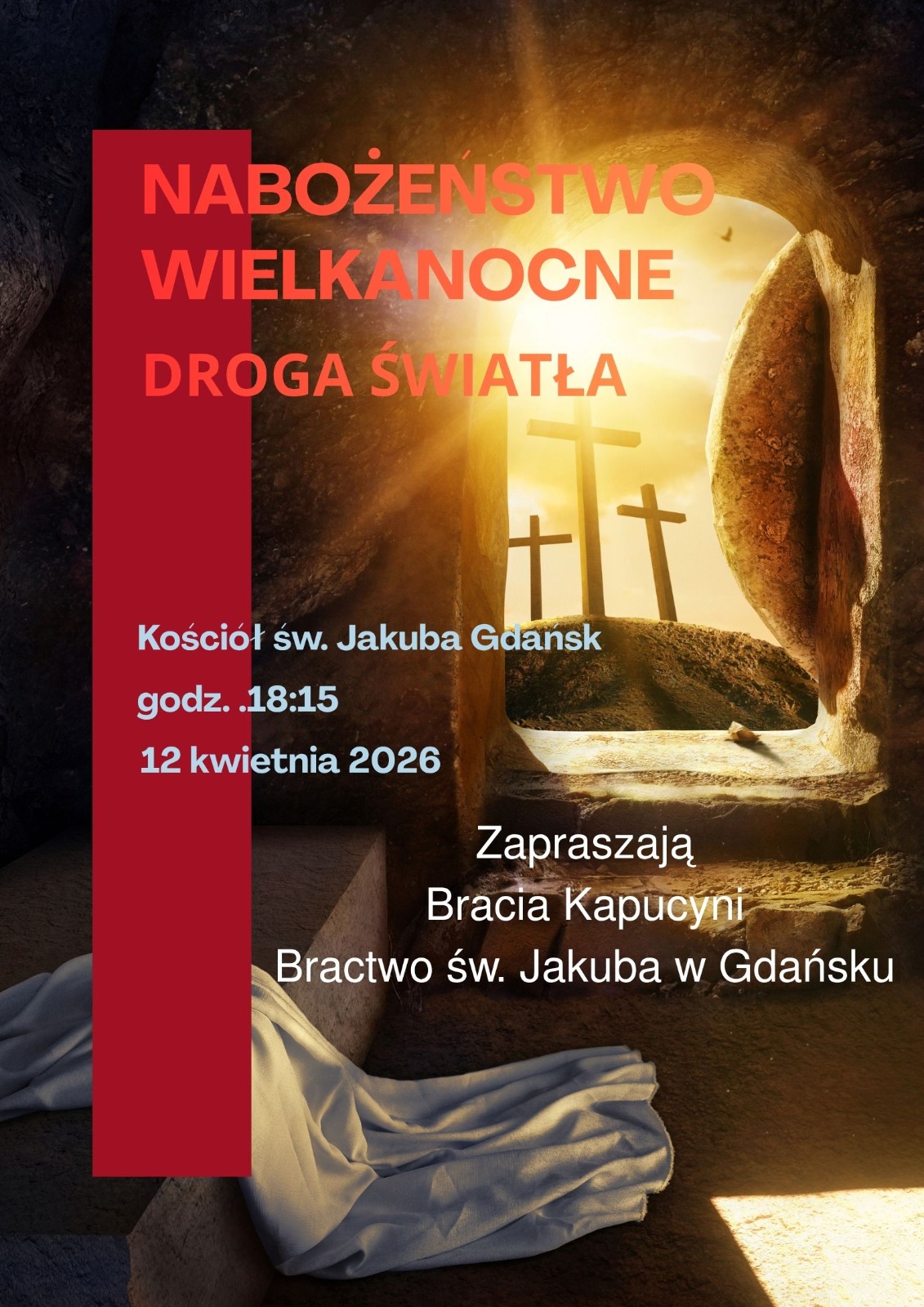 W niedzielę 12 kwietnia 2026 r, Bractwo św. Jakuba zaprasza na godz.18.15 na nabożeństwo Drogi Światła.