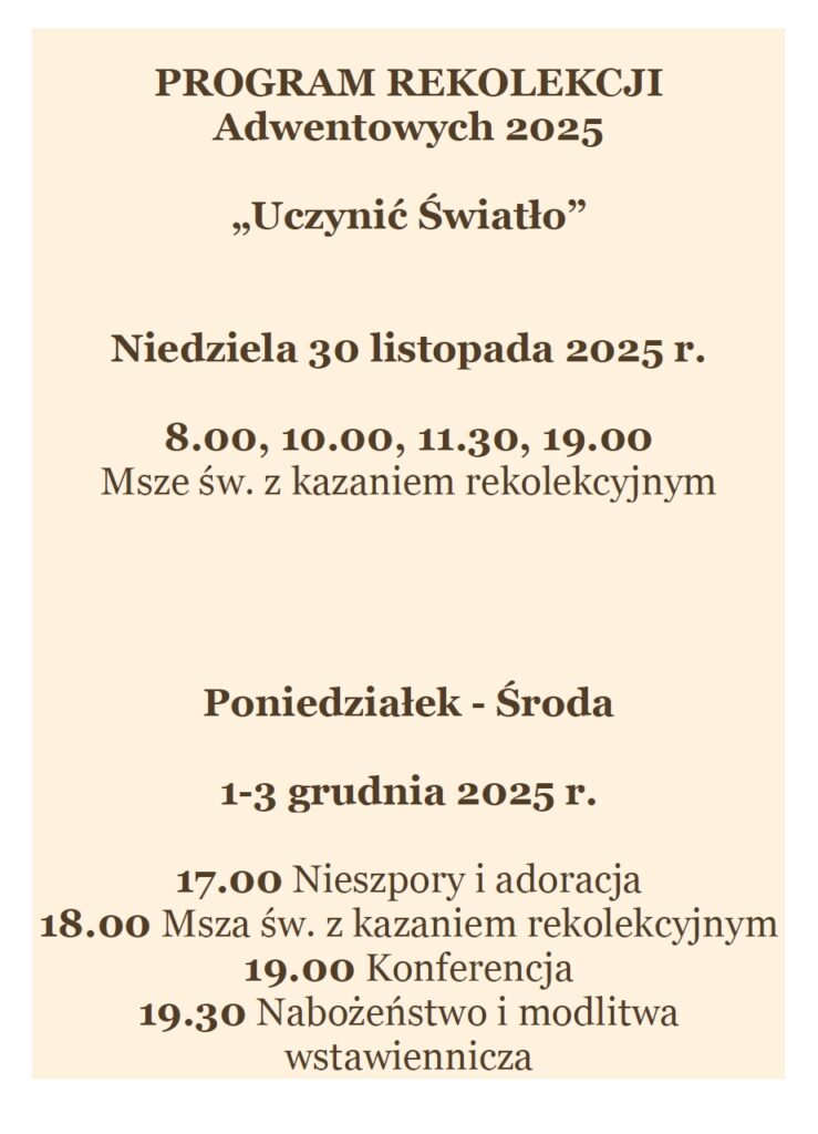 od rekolekcji adwentowych, które poprowadzi w naszym kościele